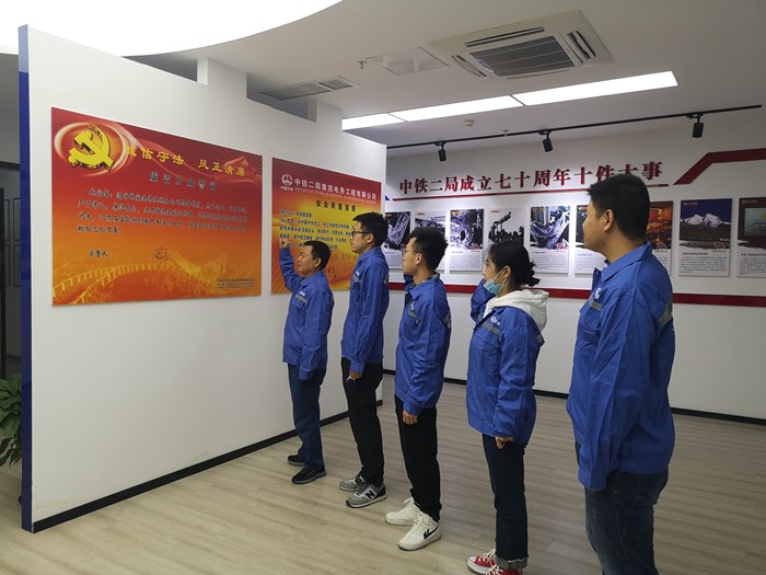 “我宣誓:遵守国家法律法规和公司规章制度,忠于企业,以身作则,严于律己,廉洁奉公,决不做违法乱纪的事,坚决同违法乱纪的行为斗争,……”11月3日, 电务公司南通地铁项目部党员及员工骨干集体公开承诺,庄严宣誓。