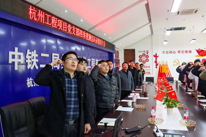 会议最后,党支部书记带领全体党员、领导班子、部门负责人及2020届新进见习生集体公开承诺,庄严宣誓。“遵守国家法律法规和公司规章制度,忠于企业,以身作则,严于律已,廉洁奉公,决不做违法乱纪的事,坚决同违法乱纪的行为作斗争,习惯在监督和约束中生活与工作,为营造风清气正的项目文化贡献自已的力量!”