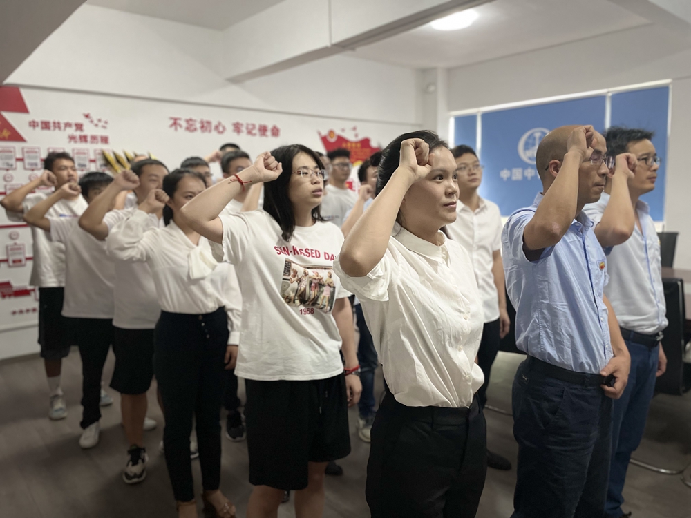 “我宣誓:遵守国家法律和公司规章制度,忠于企业,以身作则,严于律已,廉洁奉公,决不做违法乱纪的事,坚决同违法乱纪的行为作斗争……”党员活动室缓缓传来愈加洪亮的声音,在党支部书记的带领下,项目部30余人齐声宣誓,公开承诺并在宣誓牌上签下自己的名字。