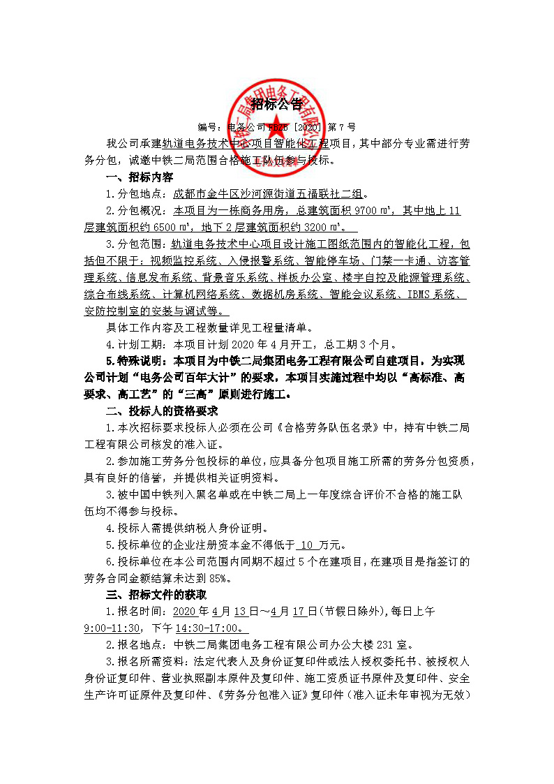 【招标公告】北京市轨道交通昌平线南延工程(西二旗至蓟门桥段)供电系统及综合监控系统设备安装工程