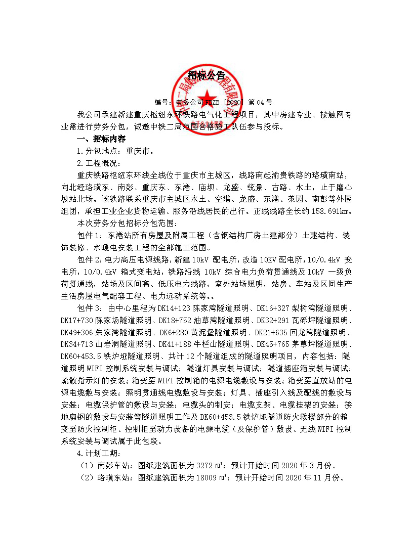【招标公告】-新建重庆枢纽东环铁路电气化工程项目