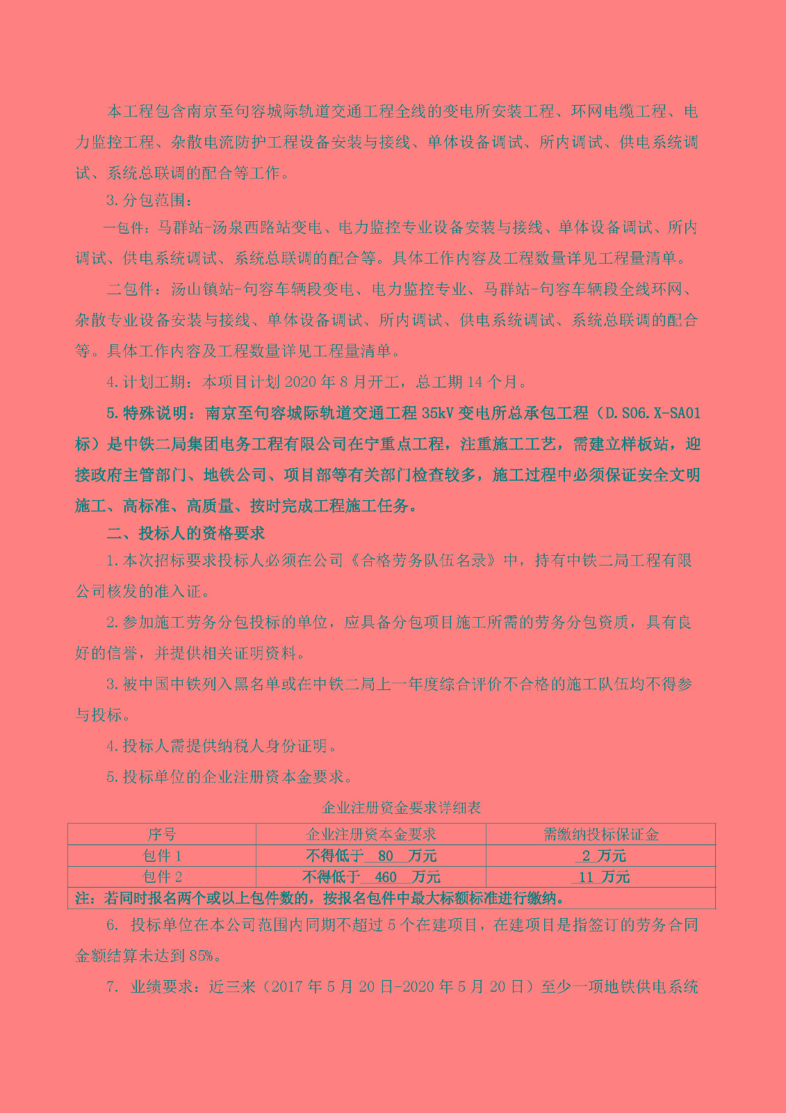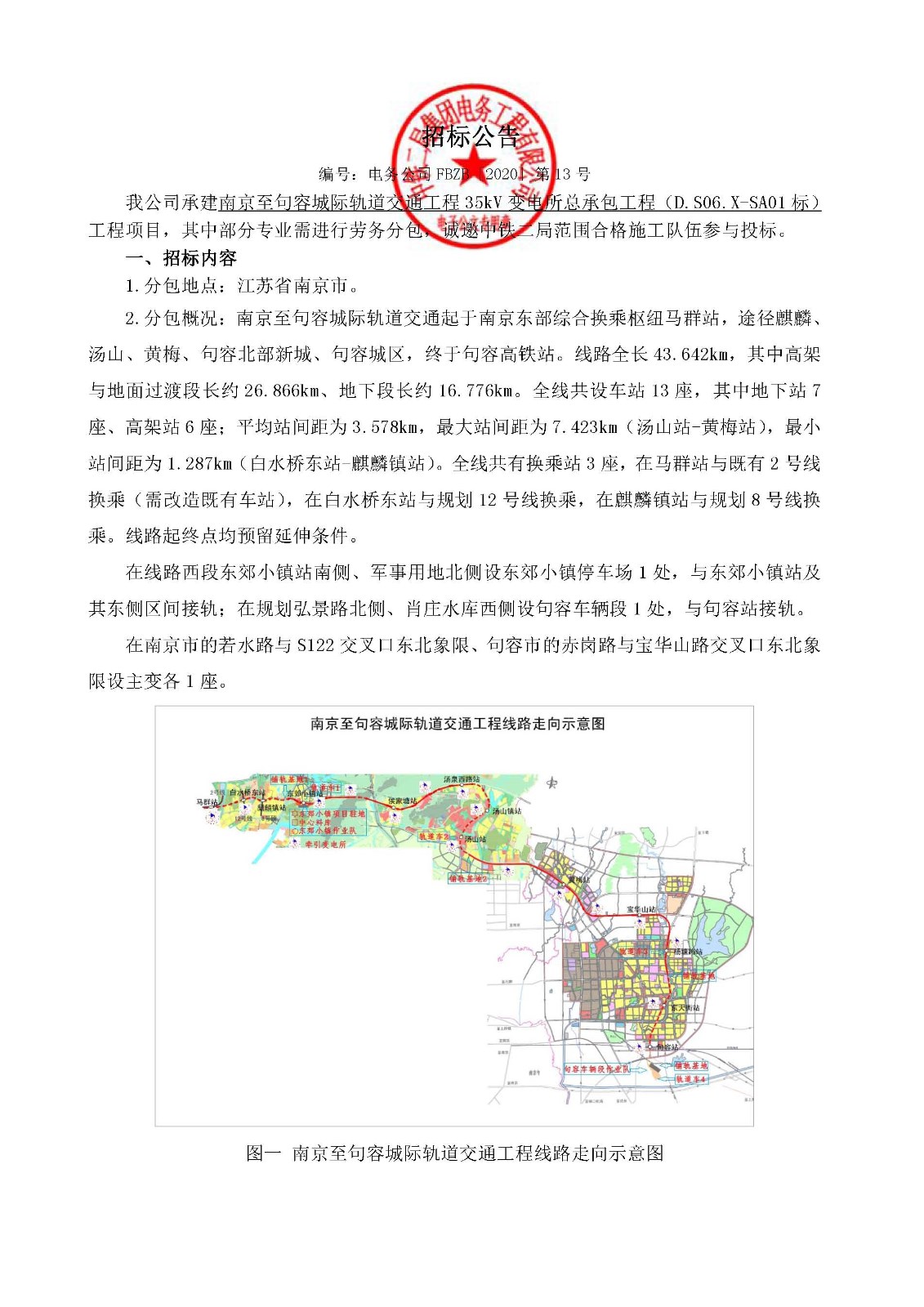 【招标公告】-南京至句容城际轨道交通工程35kV变电所总承包工程