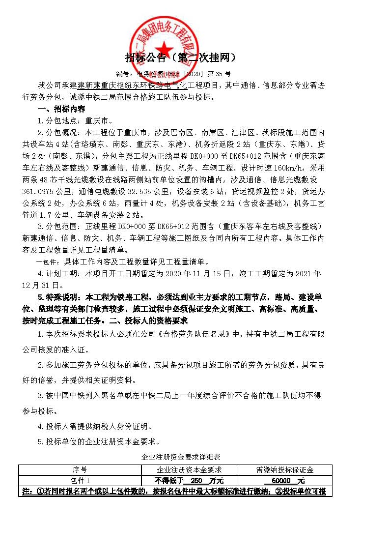 【招标公告】-重庆枢纽东环铁路电气化工程项目(通信信息专业)(第二次)
