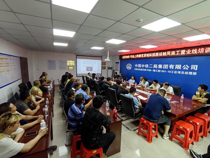 为应对即将开展的1号线上跨穗莞深城际铁路接触网施工任务,4月12日上午,东莞地铁1号线供电项目部在项目会议室组织开展施工安全培训,本次培训由中国铁路广州局集团技术专家钟振兴进行主讲。涉及营业线施工的项目部技术人员、一线作业人员以及监理单位人员共计44人到场学习。